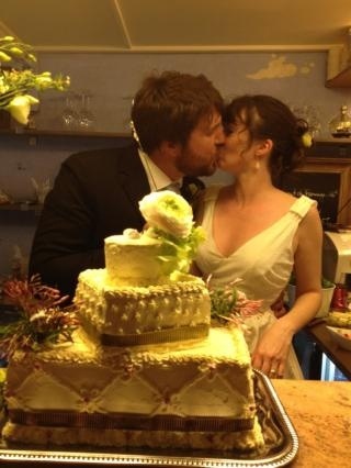 I cannot say enough nice things about the staff at Chez Jolie. They decorated the space, opened early to let my father in with flowers and let the cake have space to get set up (made by Diane Anthonissen, more to follow). The food was incredible – the best steak tartare I’ve ever had, shrimp and cauliflower salad, house made fois gras and toasts, cheeses, mini île flottants, and a berry dessert to name a few. They cut our cake and served, they went around and poured champagne all evening, they had iPod docks upstairs and down…there was even a coat closet. Even though I wouldn’t say I’m a high maintenance bride, I didn’t have any want or need unfulfilled. Even a week before when my fiancé was away on business and I came in frazzled, they were totally understanding and helpful. If you’re getting married in Paris, and want a fun, professional, but laid back wedding reception, I cannot recommend Chez Jolie enough. It was amazing and my husband and I, and our guests, still remember the day fondly.