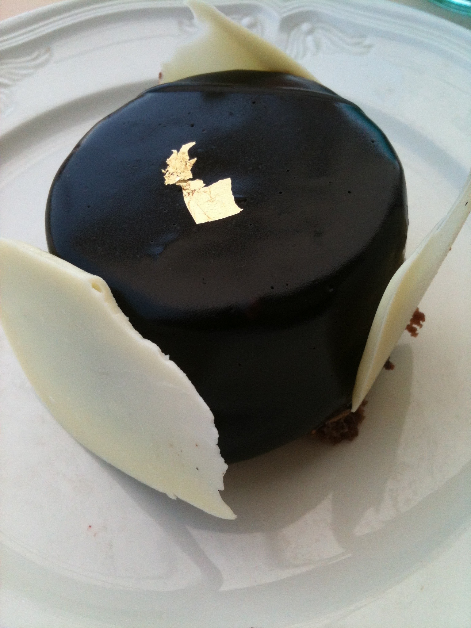 My favorite part of the meal, besides the amazing view and kind waitstaff, was dessert. A tray of around twelve different desserts came for you to choose. Some, like baba au rhum, we’re very classical…but I must have won the lottery with my three chocolate cake. Heavenly mousse inside a dense, dark choclate exterior with white chocolate accents. My husband ordered a caramel, nut dessert which was good as well.