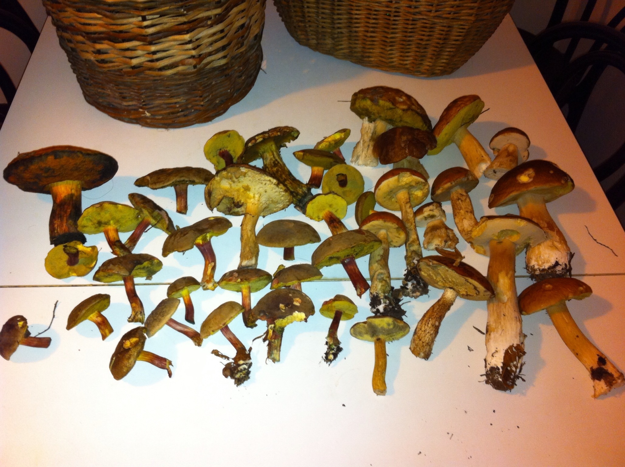 In this area we also found many with reddish-brown stems, darker caps, and green ‘mousse’ under the cap, which I think we’re called ‘forest’ cèpe.