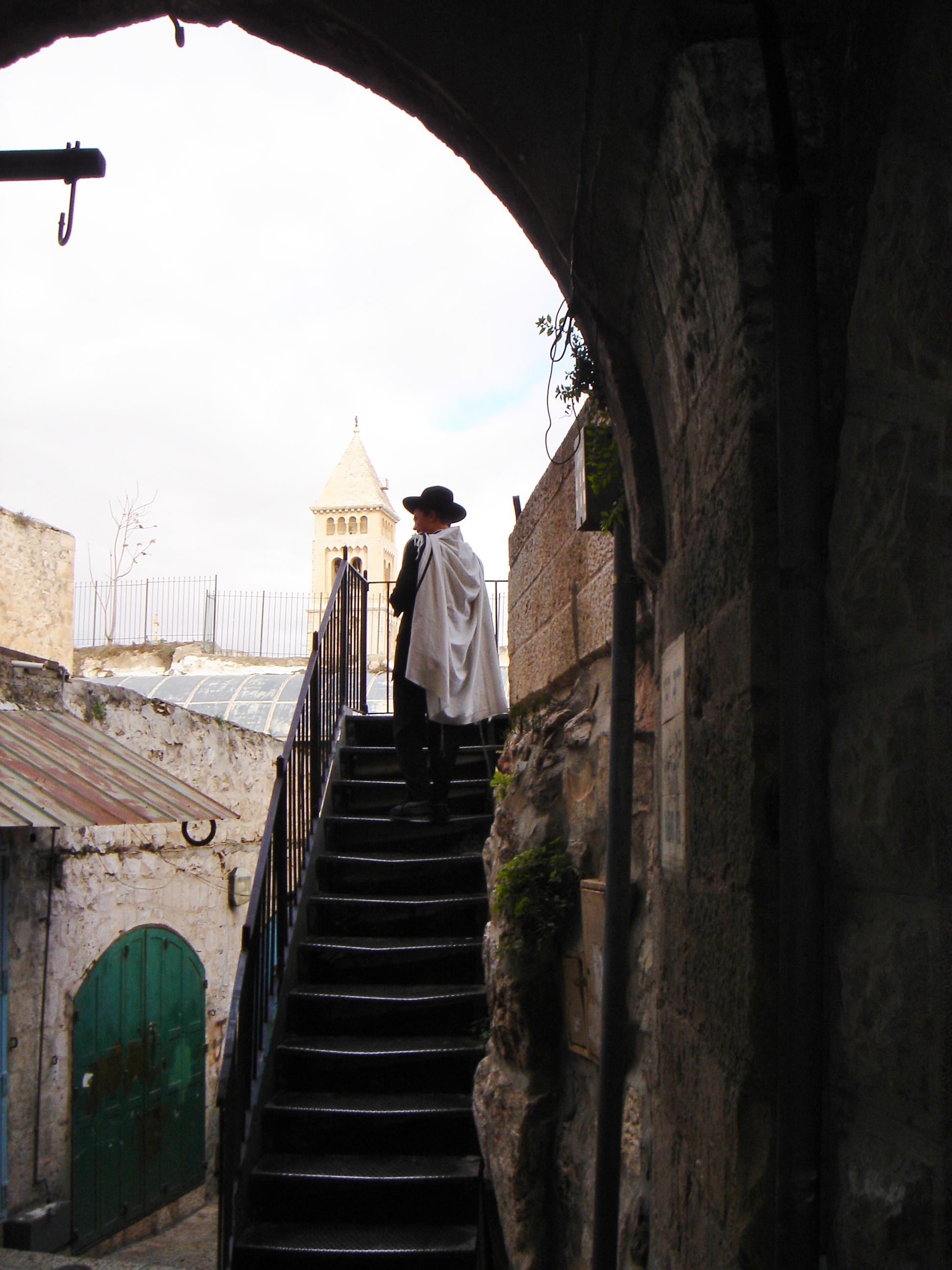 The café was bright, warm and crowded. There were a few out of place holiday decorations in the male saturated space. There was no table free of loud men who all seemed to glare when we entered. The waiter just pointed at a table with a single Western looking male and we sat. He was American, and here in Palestine to help broker a peace deal. He sat with us until we were ready to go and then walked outside with us. The church we came to have midnight mass at was still dark at 11:45 with ambulances and news crew waiting outside, and the streets were still stirring with a strange, indefinable but undeniably unwelcoming sensation. We went to the motioning cab driver and left the West Bank to attend midnight mass in Jerusalem. Probably high from our adventures, we couldn’t stop giggling during the singing. When mass ended we walked outside into the quiet and found soft snow blanketing the city.