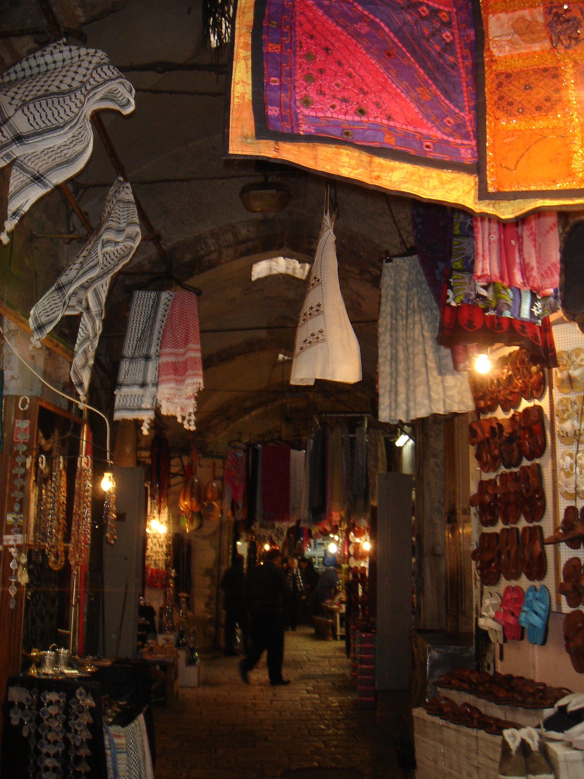 There were a few taxis that looked at us and finally said no way as we walked into the night towards the border; no way would they drive into the West Bank. Finally we got one, but I was quickly told to remove the black and white scarf that I was naively wearing to keep from freezing…so I shoved it under the driver’s seat rather than throw it from the window as requested. There were multiple security checks, with scary men carrying automatic machine guns, which only got more intense the further in we got. Kate and I would look at each other for reassurance, to remind ourselves this was a good idea. It was pitch black and only small street lights lit the rugged stone corners of buildings as we passed. All the windows were closed and interior lights off. When we got to the church in Bethlehem, no one else was there. There were absolutely, positively, NO women in the streets. And we stood out like sore thumbs to the younger male population scattered about. We looked around, pensively, stressed at our decision and fighting the urge to run back into the cab and go back. We had paid him to wait for us for one hour. We went to an ATM to get cash for a drink at the only place that seemed open…but a group of men came towards us and started circling, so we abandoned the ATM and just walked quickly into the bar. How many shekels could a coffee be in Palestine anyway?
